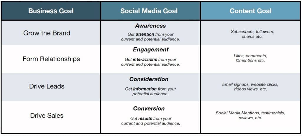 Content marketing is all about messaging, more about that soon. First, you have to set the goals you want for your business. You can then match the content to achieve them. Below is a graphic that shows how you would start.