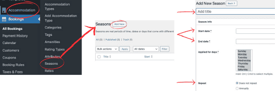 Give your Season a name, for example “Labour Weekend”. Set the start and end dates, and decide if the season should repeat (only if the dates don’t change from one year to the next). Once you’ve finished, don’t forget to “PUBLISH” your changes.